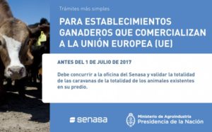 Esta actualización del sistema se requiere en el marco de la reciente aprobación de la Resolución Senasa 53/2017, que implementa nuevos procedimientos para los establecimientos que integran el circuito comercial que provee ganado para faena de exportación a la Unión Europea (UE).
